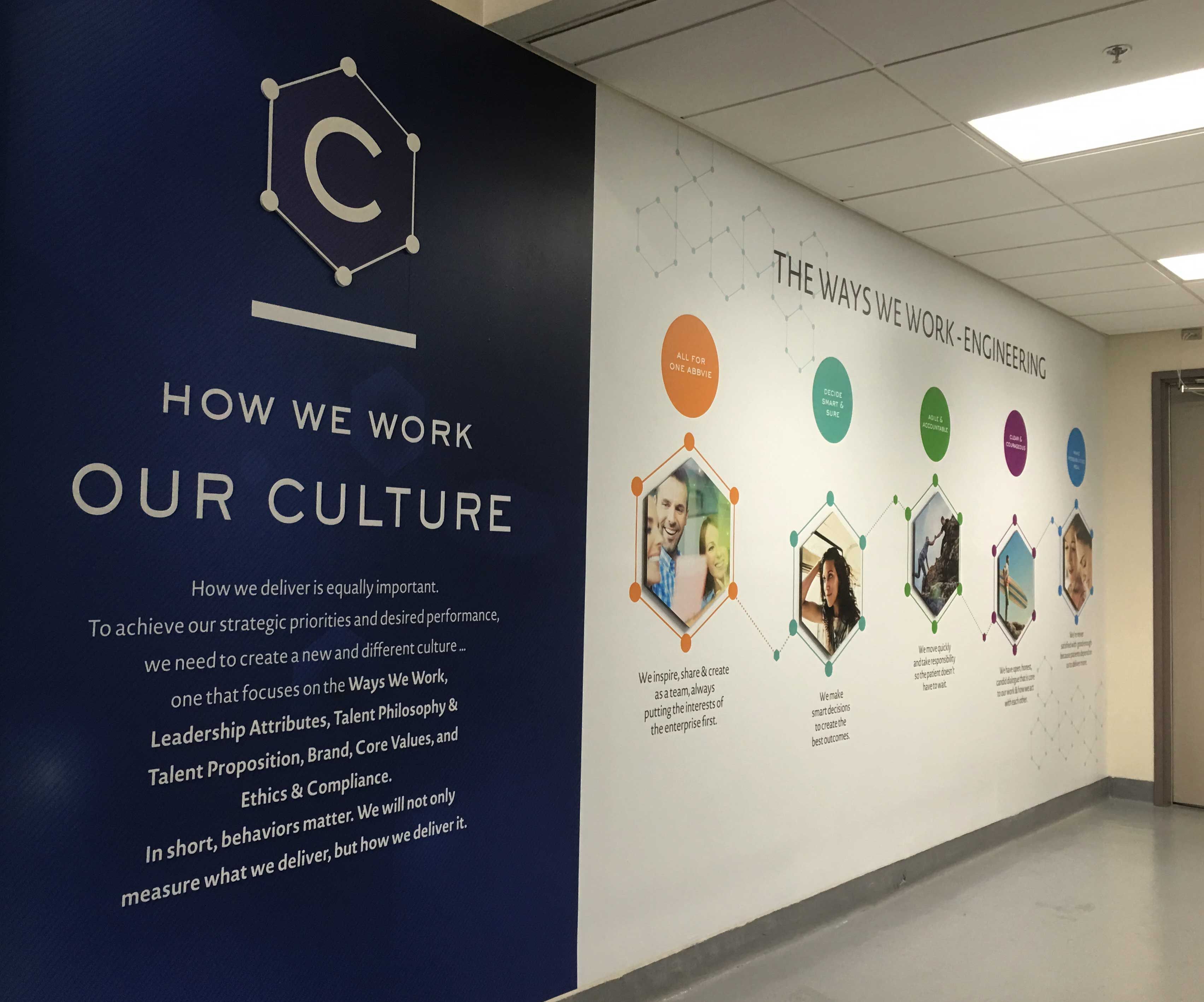 公司的文化墙设计可以在4到12周内研究、设计和安装。你是变革的领导者。我们提供战略、工具和文化强化,以实现您对更创新组织的愿景。